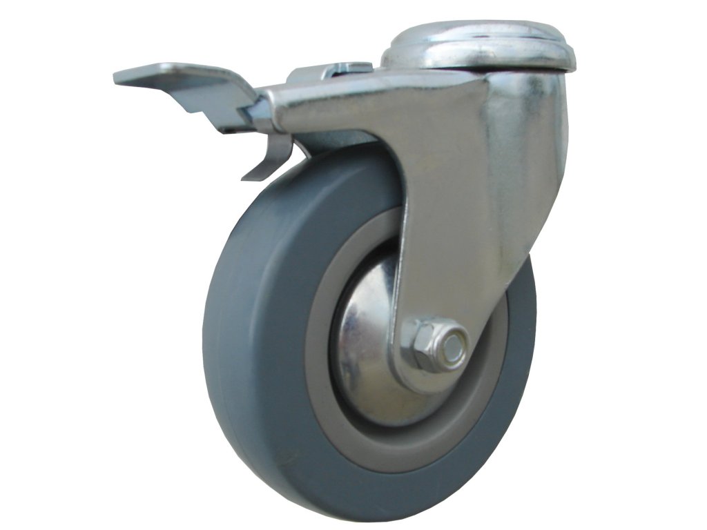 Koleso otočné s otvorom a brzdou, sivá guma 59050-22
